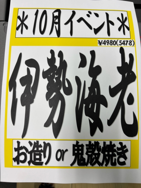今週のイベントはお待ちかね‼️伊勢海老祭り^_^そして次の日曜日は柏の食べ呑み歩きイベント‼️ユルベルトです^_^